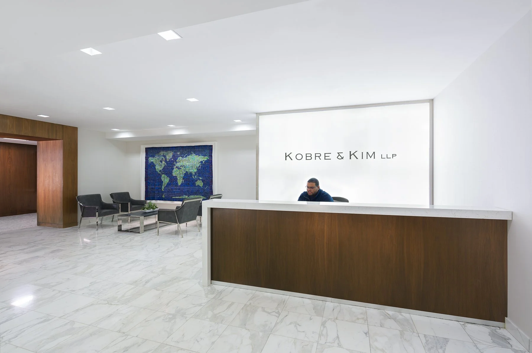 Global law firm Kobre & Kim needed to refresh and update the visitor experience at their New York headquarters office. With an aggressive timeline, the design solution required straightforward, contemporary design concepts that could be rapidly implemented to update their reception space and conference center to create more welcoming and modern space for company events, meetings, and presentations.